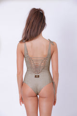 Suede Look Gray One Piece Swimsuit For Women "SIDE"