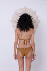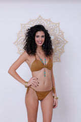 Suede Look Dark Camel Bikini Set For Women "BEADS"