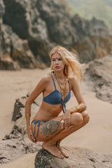 Suede Look Blue Bikini Set For Women "Cross"