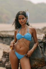 Suede Look Light Blue Bikini Set For Women "BEADS"