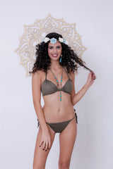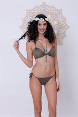 Suede Look Olive Green Bikini Set For Women "BEADS"