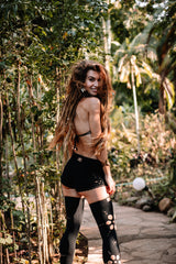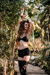 Flower Cut Out Booty Shorts In Black, Sexy Yoga Pants