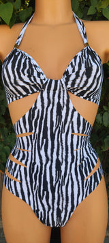 Clearance - Black and White One Piece Swimsuit For Women "JASMIN" (Lycra Fabric)