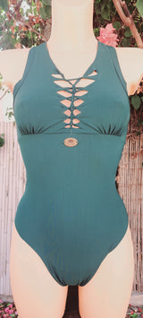 Clearance - Dark Green One Piece High Leg Swimsuit For Women "KEREN" (Lycra Fabric)