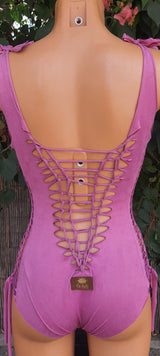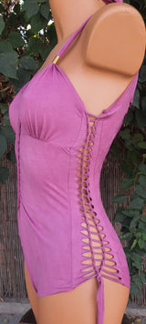 Clearance - Suede Look Bazooka Pink One Piece Swimsuit For Women "DELI"