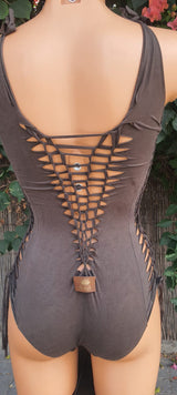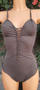 Clearance - Suede Look Brown One Piece Swimsuit For Women "SIDE"
