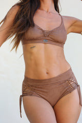 Suede Mocha Brown High Waisted Bikini Set For Women "ELLA"