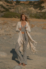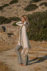 Suede Light Beige Cardigan Decorated with Fringe