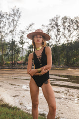 Black One Piece High Leg Swimsuit For Women "KEREN" (Lycra Fabric)