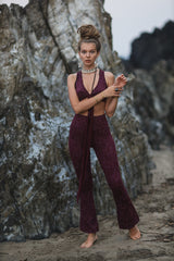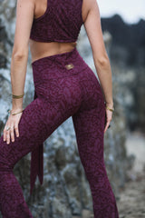 Flare Yoga Pants For Women In Bordeaux Print (Lycra Fabric)