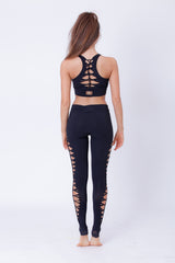 These beautiful leggings are made to move with you. On the side of the leg, there is a decoration of cuts & knots that give the legging its exclusive look. The waistband is flexible, the fabric is soft and stretchy, and the length is long enough to scrunch around your ankles or pull over your heels.