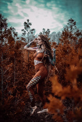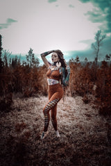 These beautiful leggings are made to move with you. On the side of the leg, there is a decoration of cuts & knots that give the legging its exclusive look. The waistband is flexible, the fabric is soft and stretchy, and the length is long enough to scrunch around your ankles or pull over your heels.