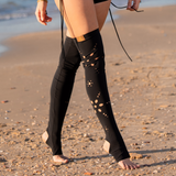 Flowers Cut Out Over The Knee Leg Warmers In Black