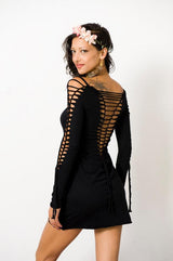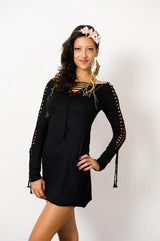 Long Sleeve Black Mini Dress, Pixie Dress