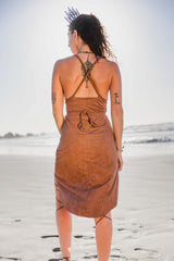 Suede Brown Braided Dress, Boho Dress, Cross Back Dress