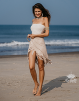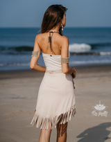 Suede Light Beige Wrap Swimwear Skirt Decorated with Fringe / Cover up