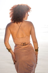 Suede Beige (Nude) Braided Dress, Boho Dress, Cross Back Dress