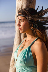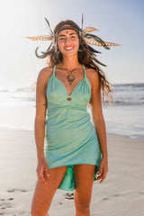 Suede Light Turquoise Braided Dress, Boho Dress, Cross Back Dress