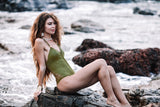 Suede Look Army Green One Piece Swimsuit For Women "DORIN"