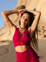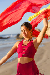 The fabric is soft and stretchy, made from our super soft Lycra fabric, the perfect top for yoga, dance, hoop, music festivals, burning man, or just for lounging about.