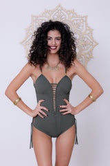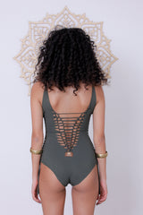 Olive Green One Piece Swimsuit For Women "DELI" (Lycra Fabric)