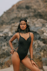 One Piece Swimsuit For Women in Shabby Black "NOA" (Lycra Fabric)