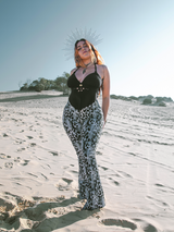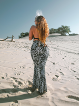 Plus Size - Flare Yoga Pants For Women In Black and White Leopard Print (Thick Lycra Fabric)