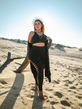 The fabric is soft and stretchy, made from our super soft Lycra fabric, the perfect top for yoga, dance, hoop, music festivals, burning man, or just for lounging about.
