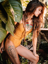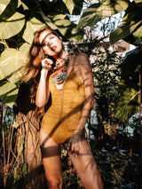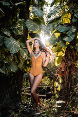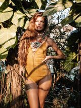Suede Look Mustard One Piece Swimsuit For Women "SIDE"