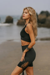 These beautiful leggings are made to move with you. On the side of the leg, there is a decoration of cuts & knots that give the legging its exclusive look. The waistband is flexible, the fabric is soft and stretchy.