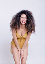 Suede Look Mustard One Piece Swimsuit For Women "SIDE"